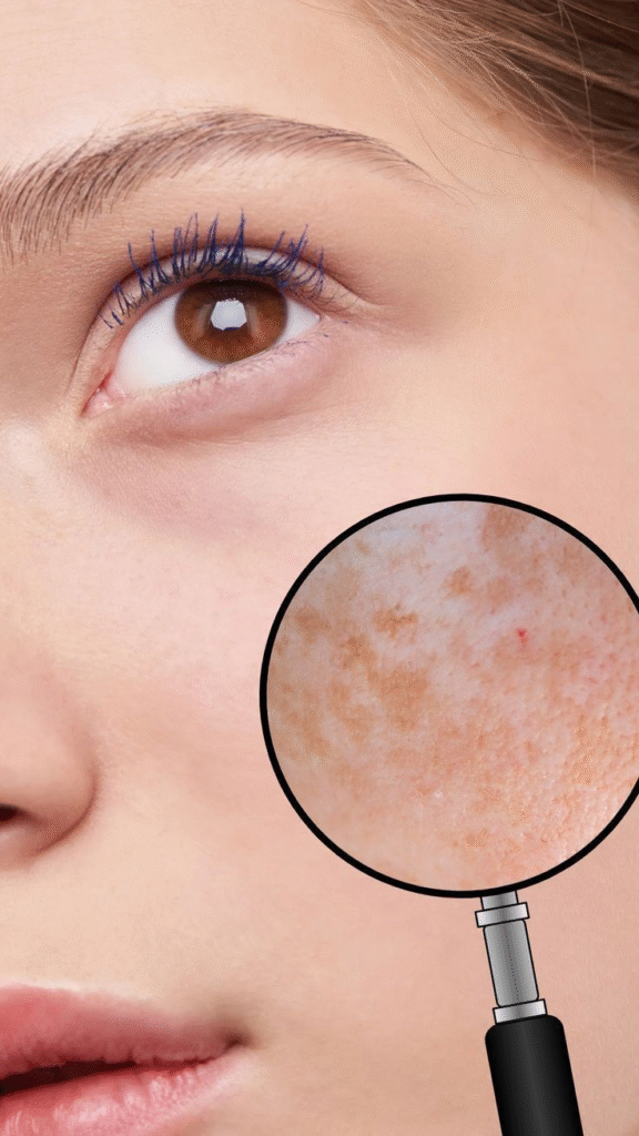 Uneven skin tone or dark patches often result from sun exposure, acne scars, or hormonal changes.